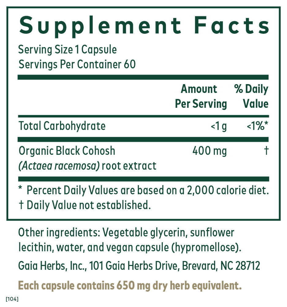 PERIMENOPAUSE AND POSTMENOPAUSE* 650 mg DRY HERB EQUIVALENCY , Each capsule contains 650 mg dry herb equivalent.