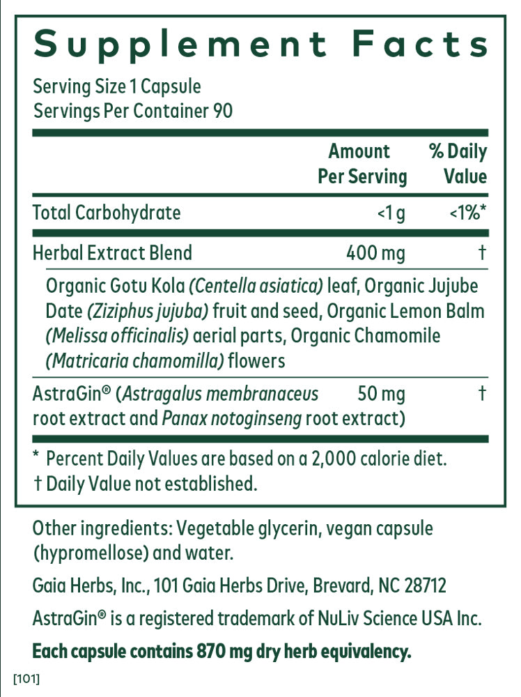 SUPPORTS THE FUNCTION OF INTESTINAL EPITHELIAL CELLS* AstraGin® is a registered trademark of NuLiv Science USA Inc. Each capsule contains 870 mg dry herb equivalency