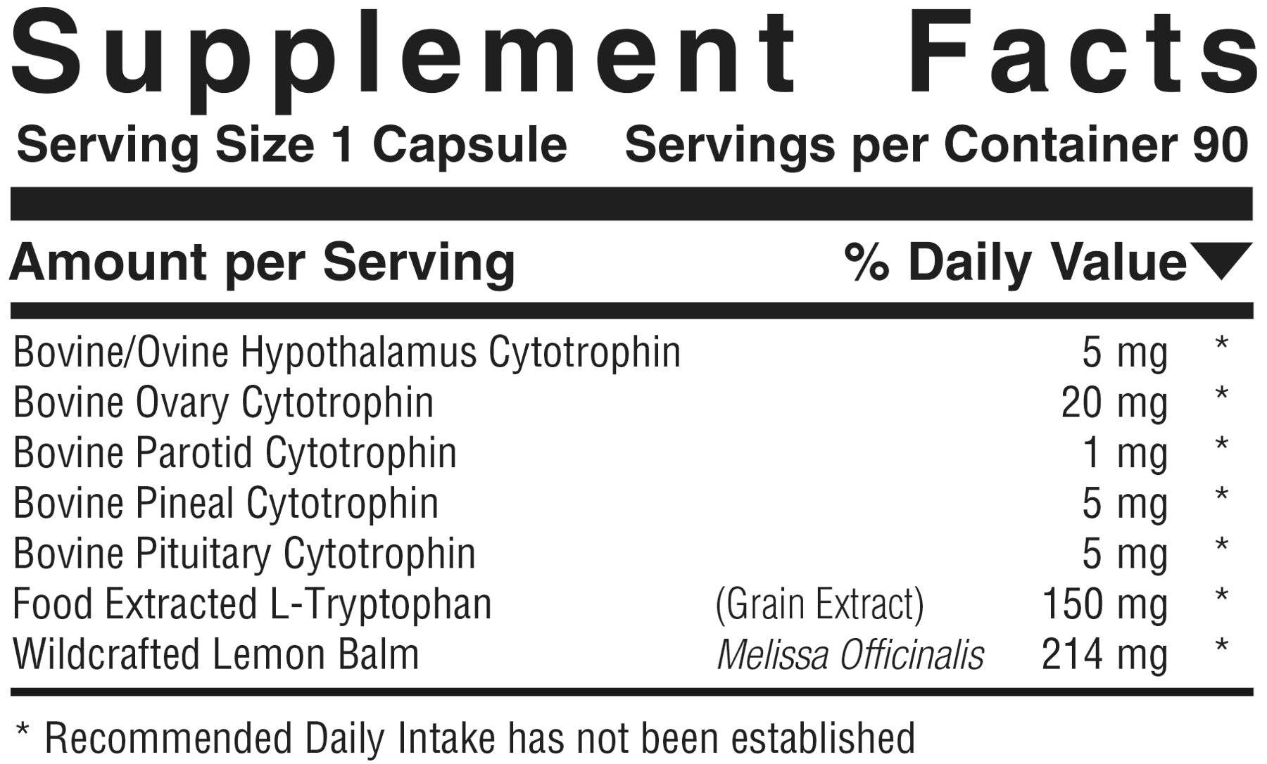 Restful Mind SupportTM is a 100% Food supplement that is intended to supply nutrients, glandulars, and herbs needed to maintain and support optimal feelings of well-being and normal sleep. The pineal gland helps regulate circadian rhythm.